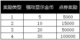 活动当日5:00点开始,只要玩家强攻至一定金币,即可获得点券大礼。