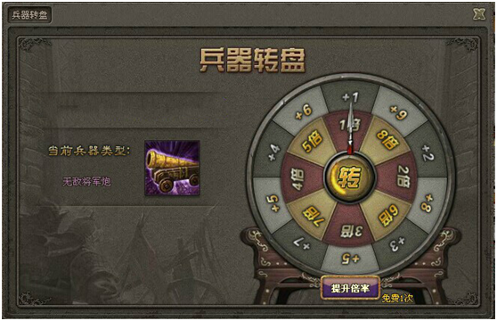 2.      选择一种兵器,每摇动一次转盘,可随机获得的兵器数量= 基数X 倍数